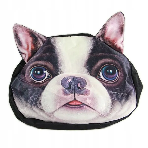 Wszyscy będą Ci zazdrościć, gdy wyjdziesz na spacer, do szkoły lub pracy z naszym pięknym psem na ramieniu :) A ten piesek to praktyczna, całkiem pojemna i bardzo efektowna torba z efektem 3D. Świetnej jakości nadruk na froncie torby do złudzenia przypomina prawdziwą twarz zwierzaka, a jago duże piękne oczy potrafią wręcz wzruszyć ;) W torbie bezproblemowo zmieścisz kilka zeszytów czy książek, albo tablet czy netbooka. Wewnątrz znajduje się dodatkowa kieszeń zamykana na zamek oraz dwie otwarte kieszonki na komórkę i inne drobiazgi. Torba wyposażona jest w dwa ramiączka o długości ok. 70 cm każde.